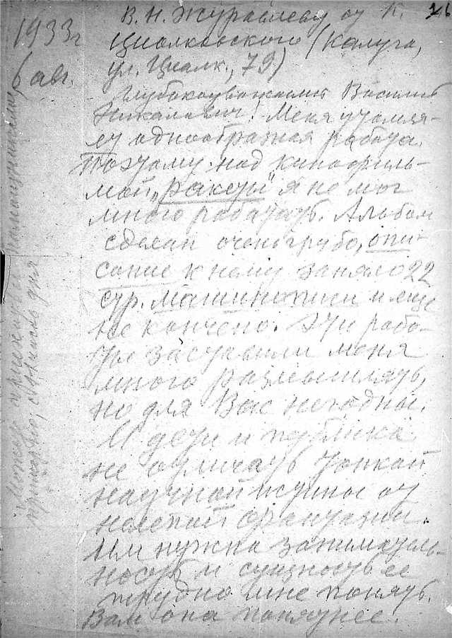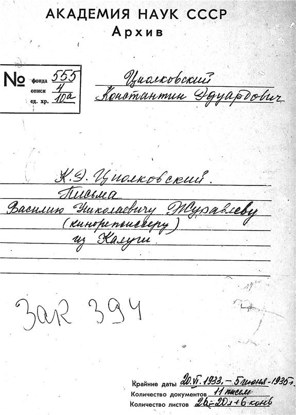Письма К.Э. Циолковского к кинорежиссеру Журавлеву Василию Николаевичу.