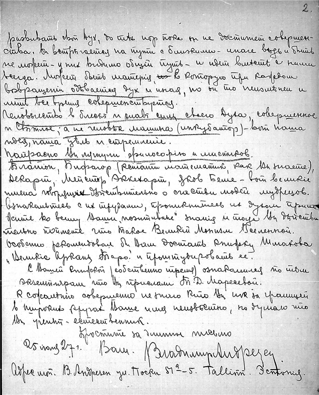 Письмо Андрезена Владимира к К.Э. Циолковскому.