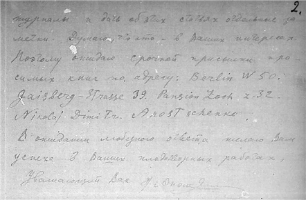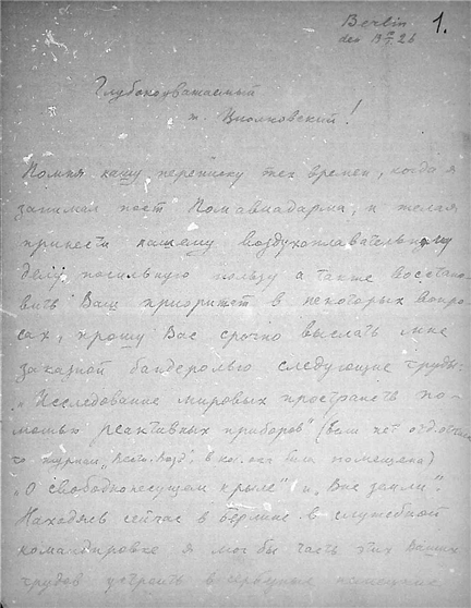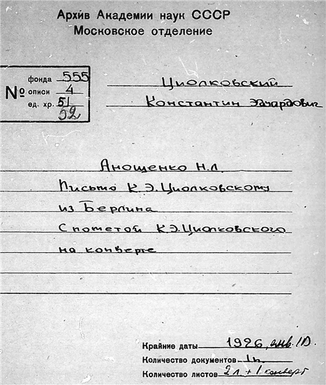 Письмо зав. редакцией "Вестника воздушного флота" Анощенко Николая Дмитриевича к К.Э. Циолковскому.
