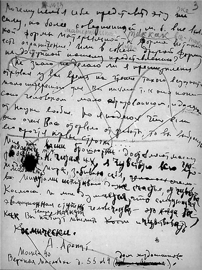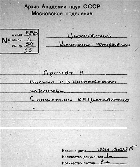 Письмо А. Арендта к К.Э. Циолковскому.