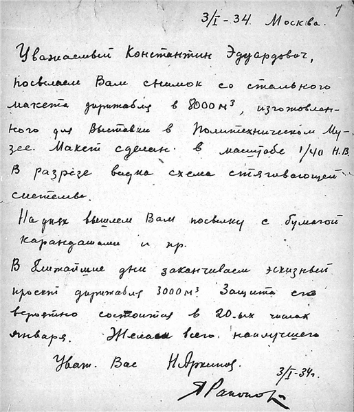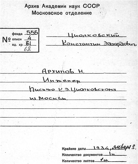 Письмо инженера Н. Архипова к К.Э. Циолковскому.