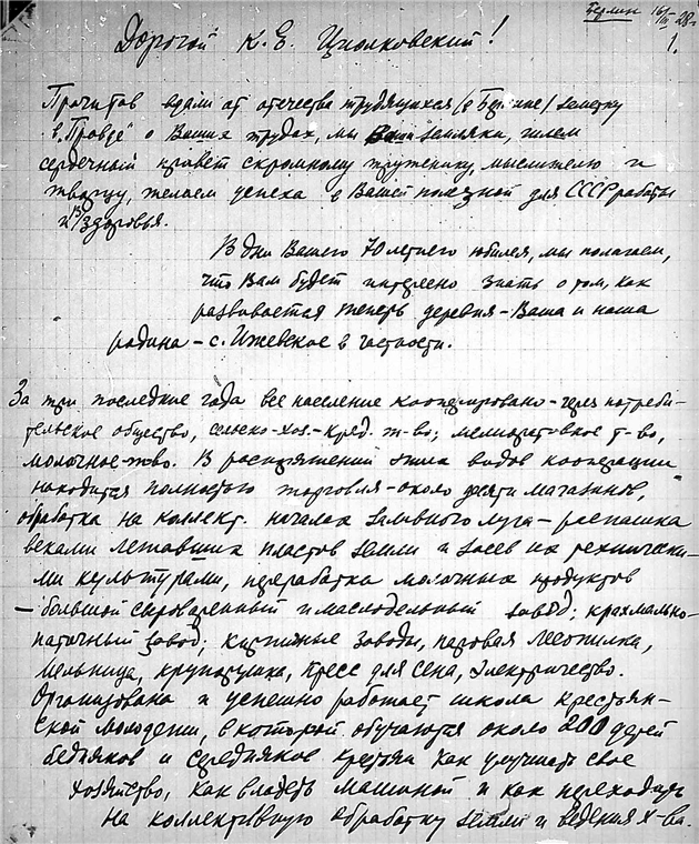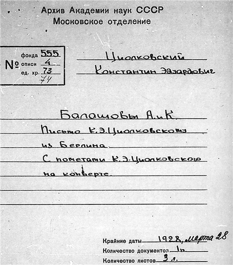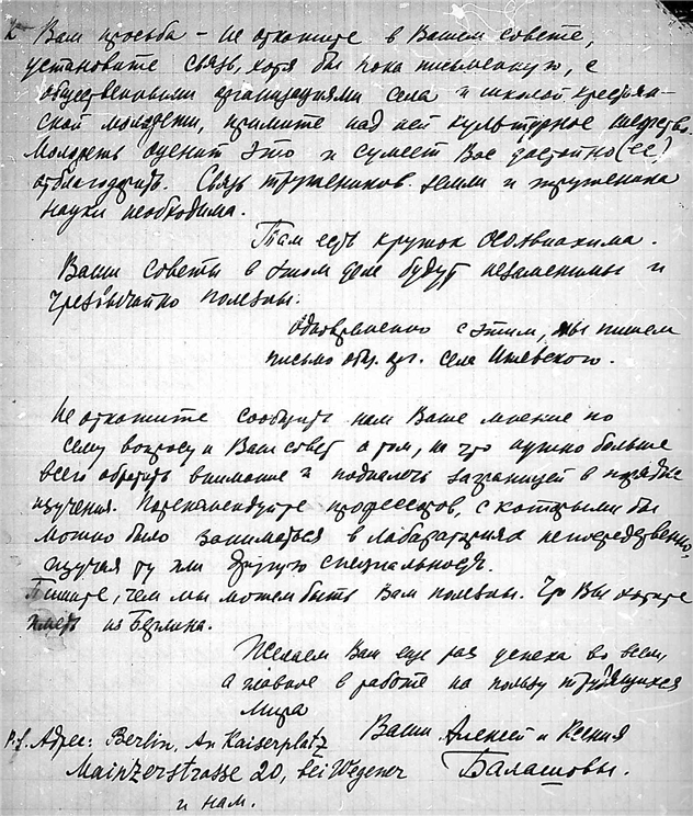 Письмо Балашовых Алексея и Ксении к К.Э. Циолковскому.