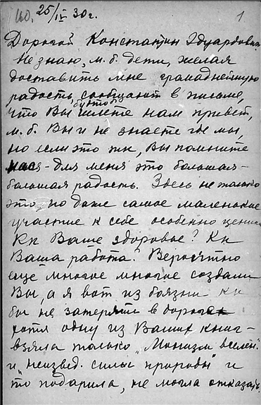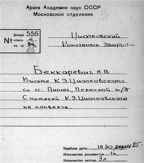 Письмо медсестры А.В. Беккаревич к К.Э. Циолковскому.