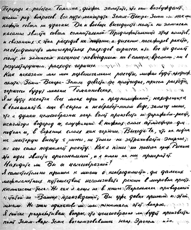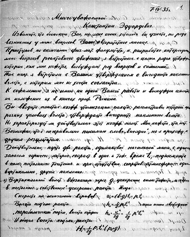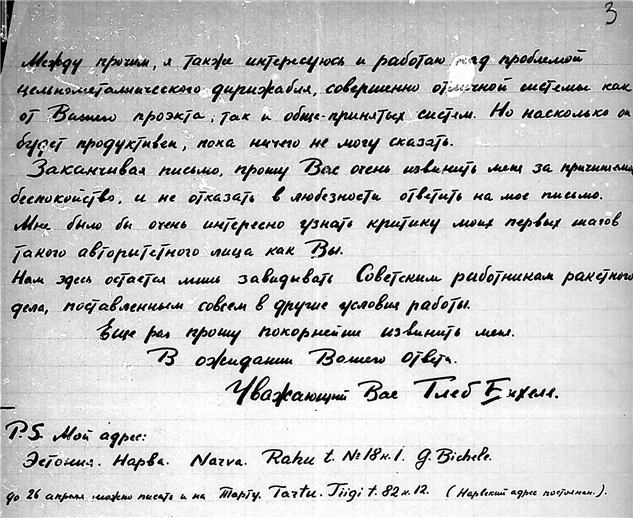 Письмо инженера Бихеле Глеба к К.Э. Циолковскому.