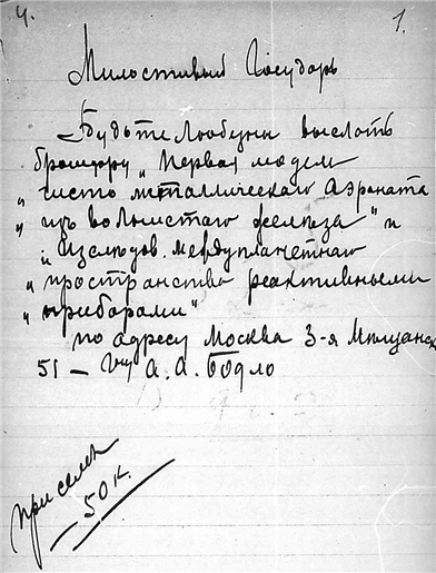 Письмо Бодло А.А. к К.Э. Циолковскому.