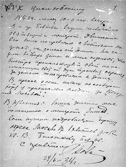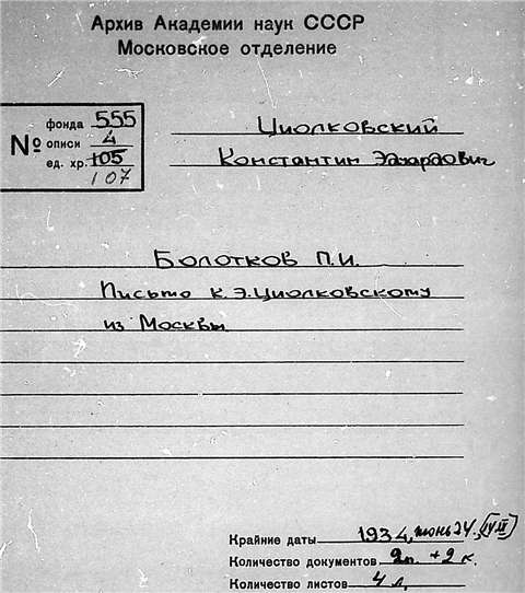 Письмо Болотрикова Павла Ивановича к К.Э. Циолковскому.
