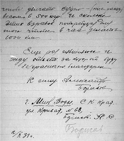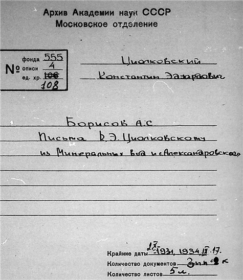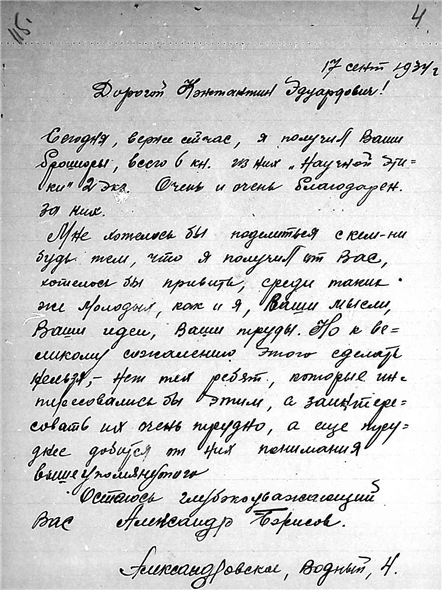 Письма Борисова Александра С. к К.Э. Циолковскому.