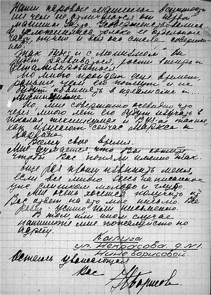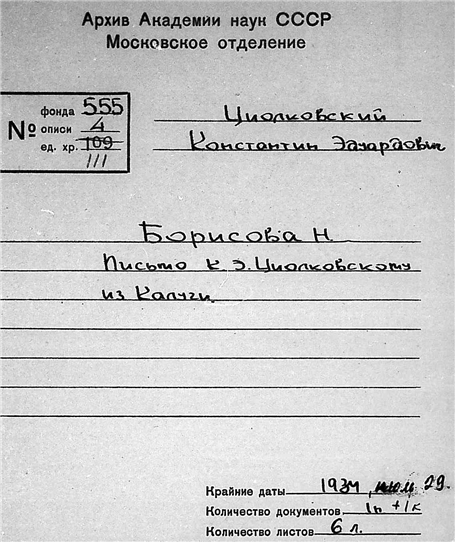 Письмо Борисовой Нины к К.Э. Циолковскому.