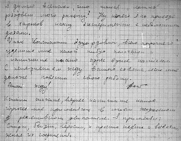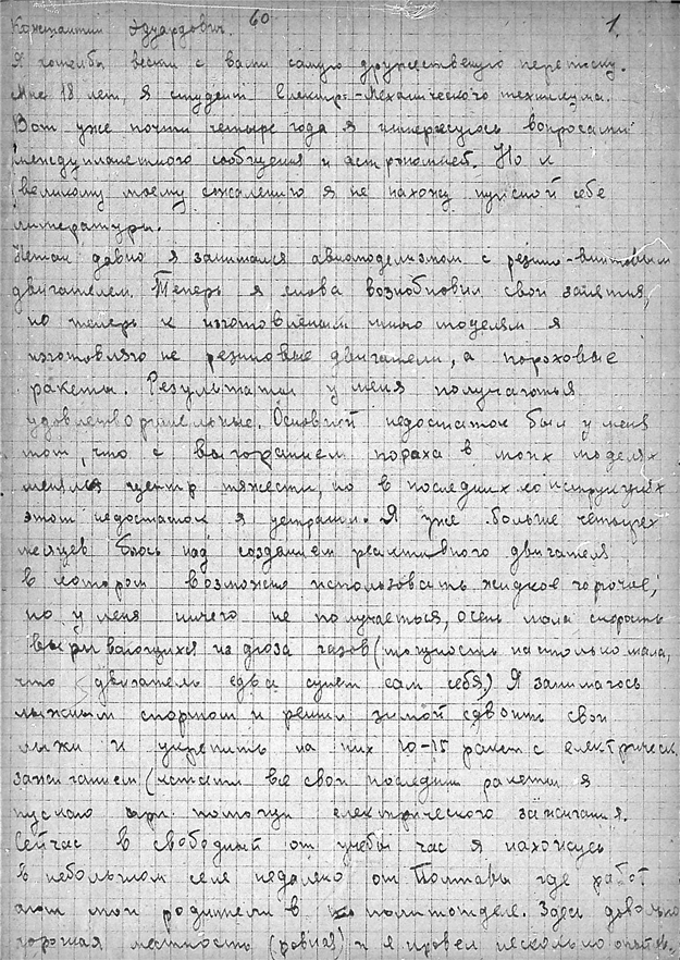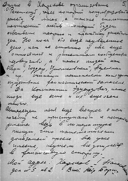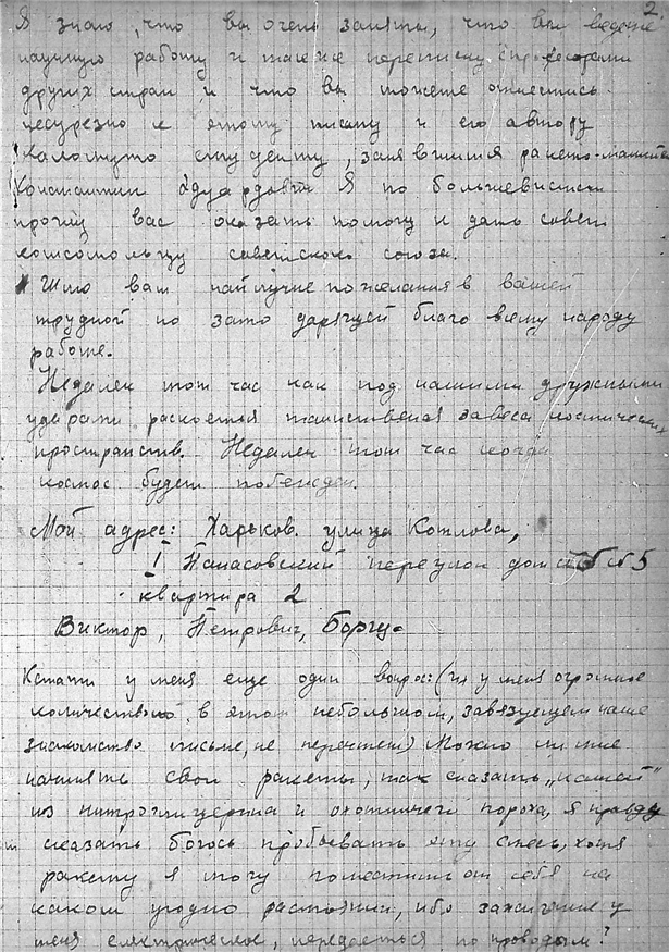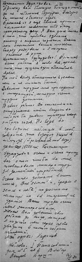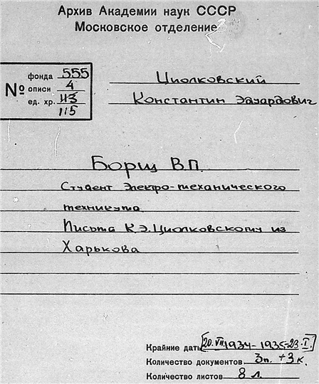 Письма студента Электро-механического техникума Борща Виктора Петровича к К.Э. Циолковскому.