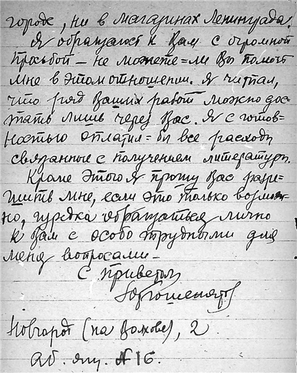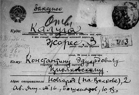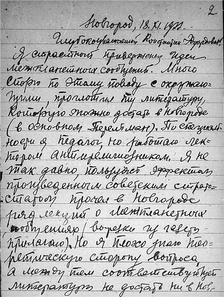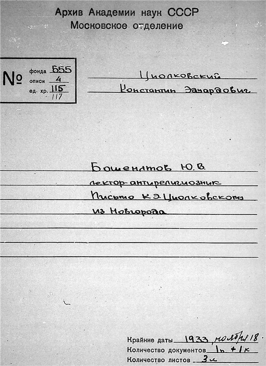 Письмо лектора-антирелигиозника (педагога) Ю.В. Бошенятова к К.Э. Циолковскому.