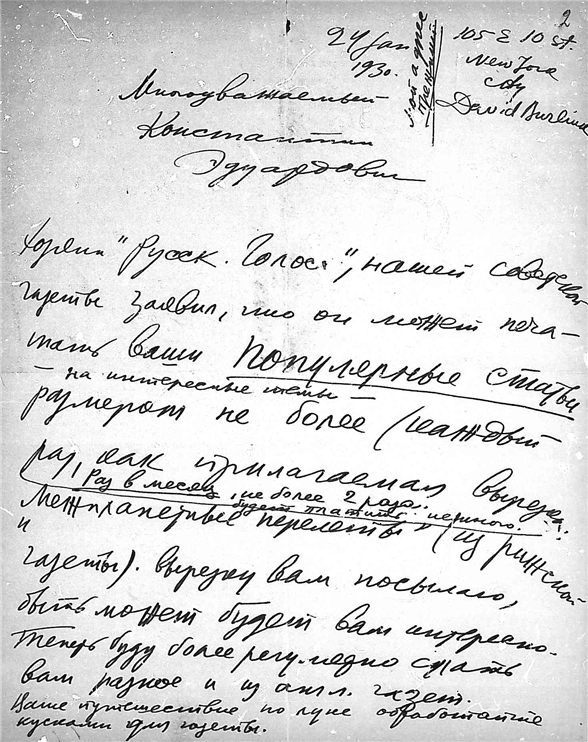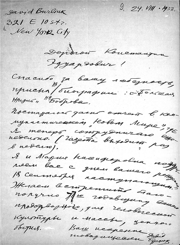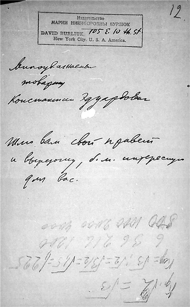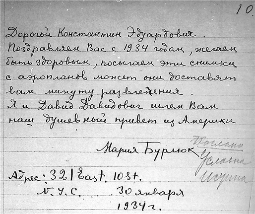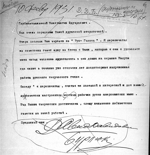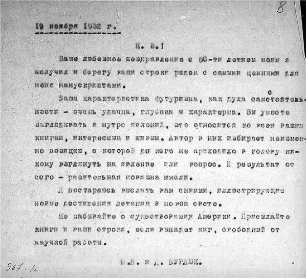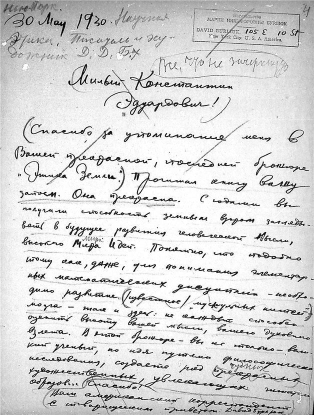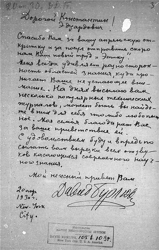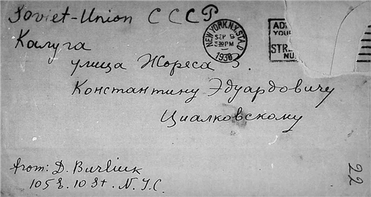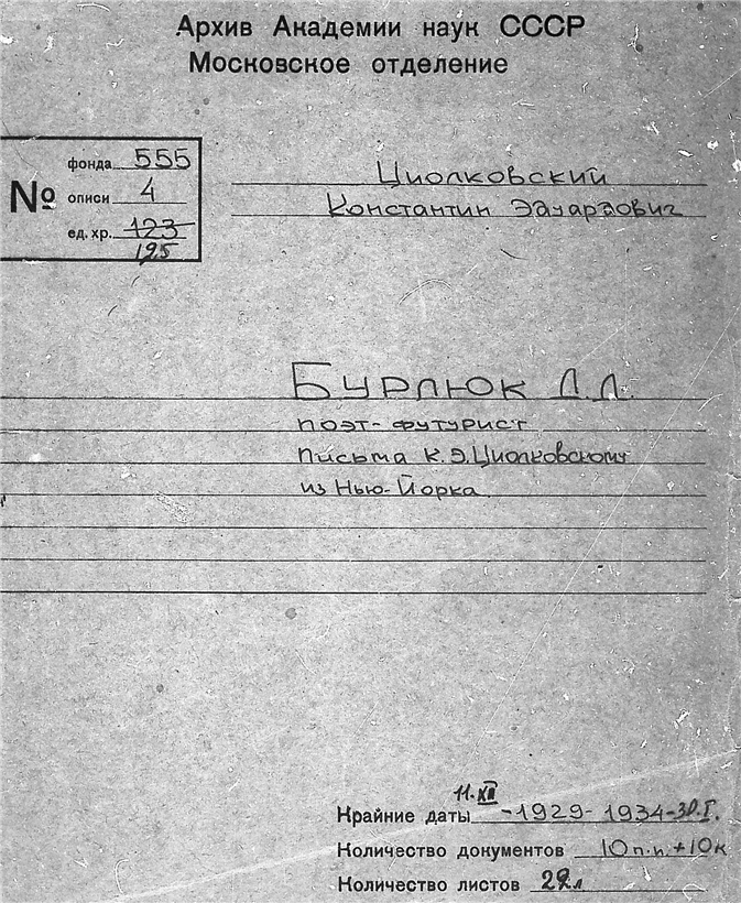 Письма поэта-футуриста Бурлюка Давида Давидовича к К.Э. Циолковскому.