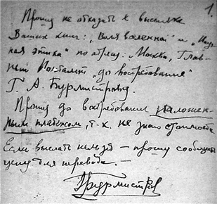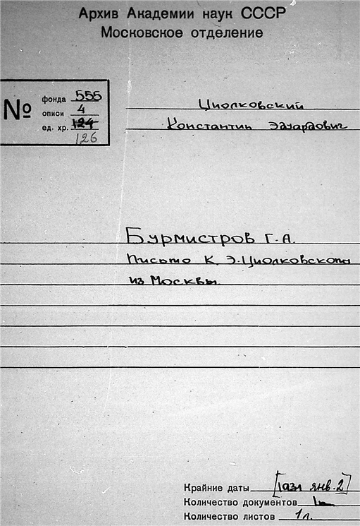 Письмо А. Бурмистрова к К.Э. Циолковскому.