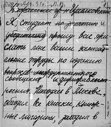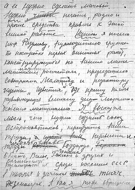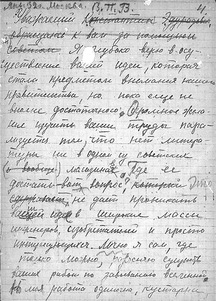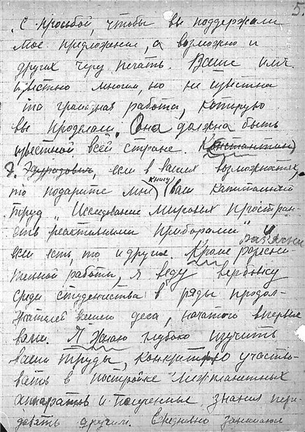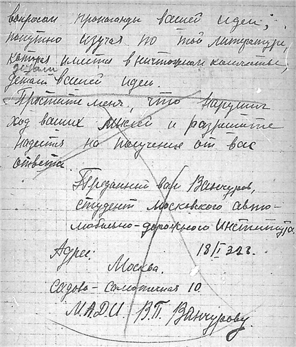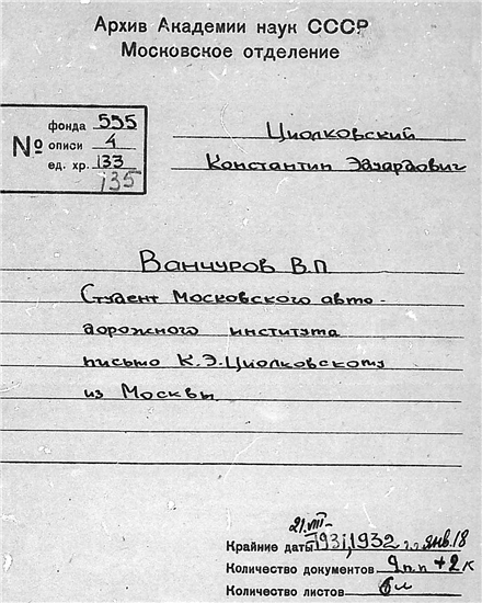 Письмо студента Московского автодорожного института В.П. Ванчурова к К.Э. Циолковскому.