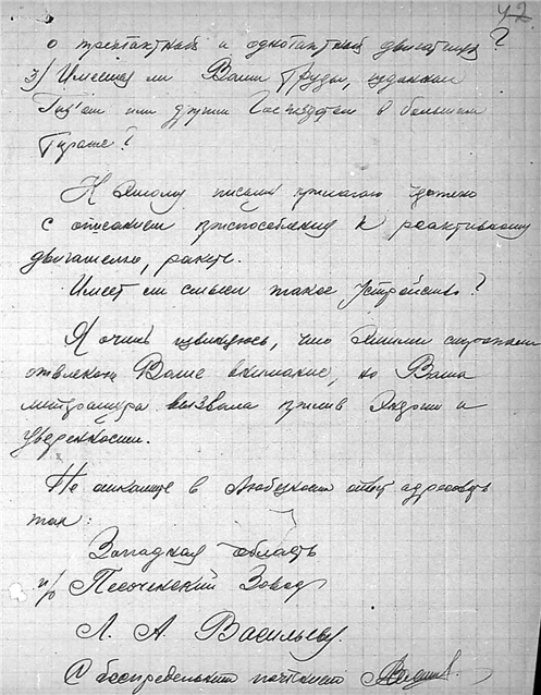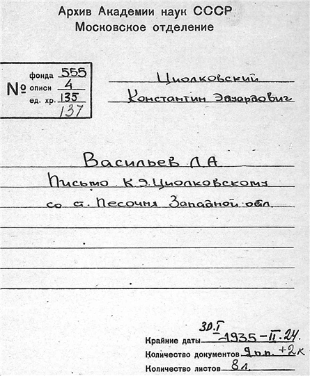 Письма Л.А. Васильева к К.Э. Циолковскому.
