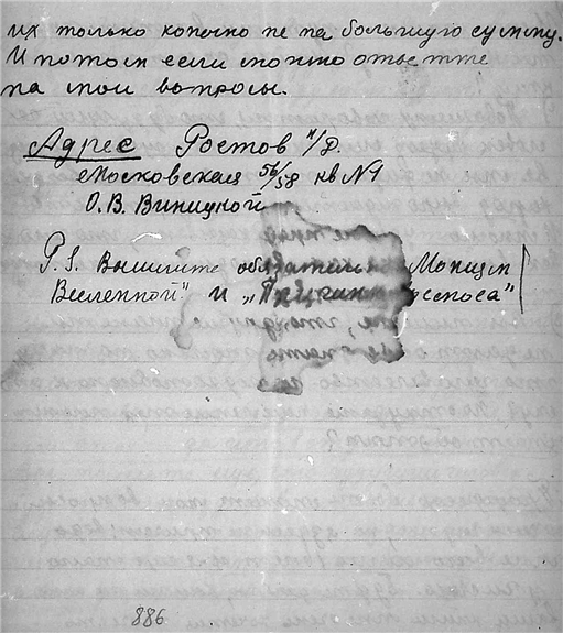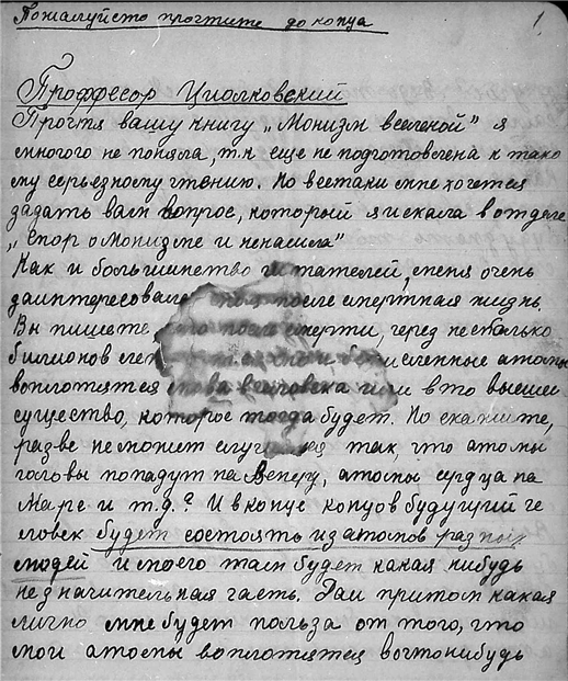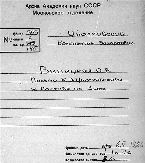 Письмо Виницкой Ольги В. к К.Э. Циолковскому.