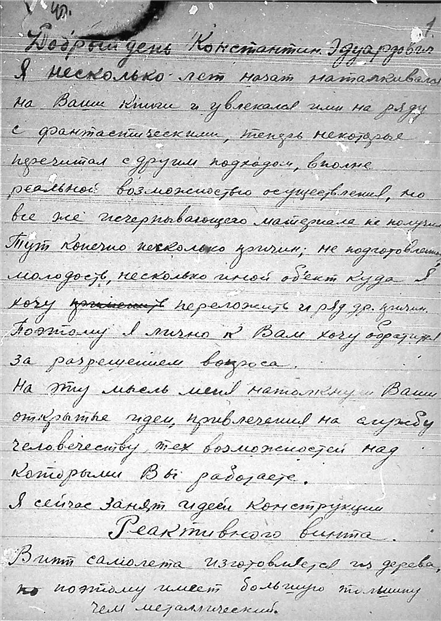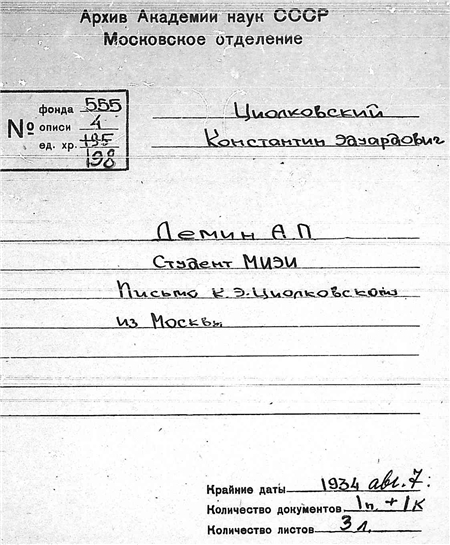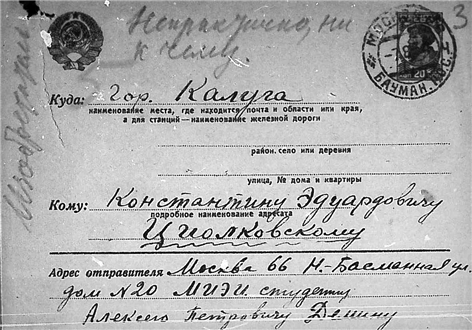 Письмо студента МИЭИ Демина Алексея Петровича к К.Э. Циолковскому.