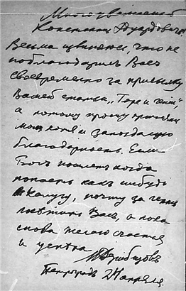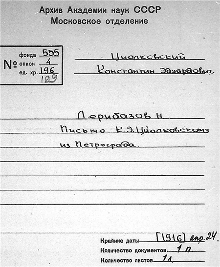 Письмо Н. Дерибазова к К.Э. Циолковскому.