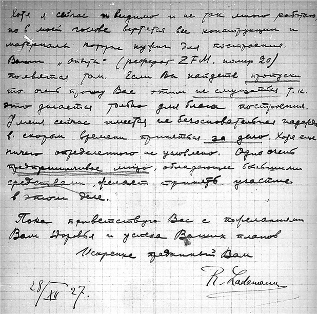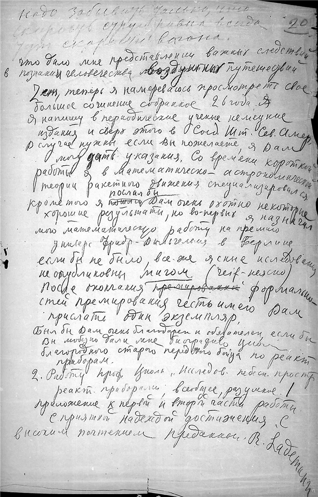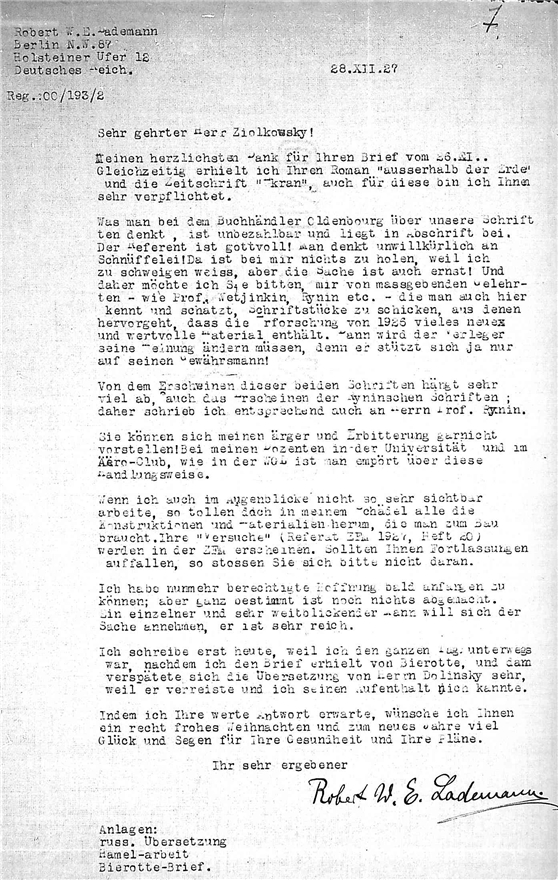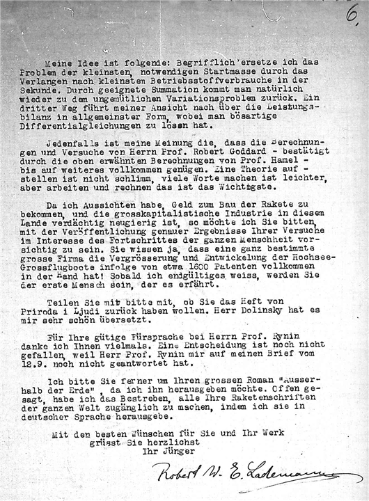 Дело № 340 | Название: | Письмо инженера Ладемана Роберта (Lademann R.) к К.Э. Циолковскому. | | Вид материала: | письмо | | Способ воспроизведения: | автограф, машинопись | | Языки: | немецкий, русский, французский | | Крайние даты: | 14.06.1927 - 15.04.1930 | | Изображения страниц: |