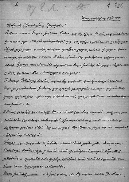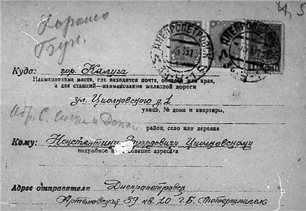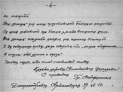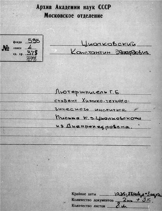 Письма студента Химико-технологического института Лютершпигеля Григория Б. к К.Э. Циолковскому.