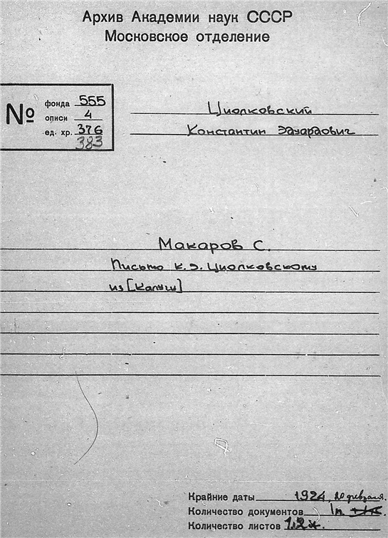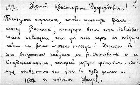 Письмо Макарова С. к К.Э. Циолковскому.