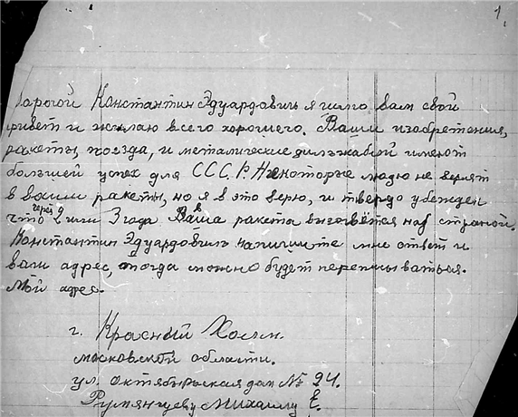 Письмо Румянцева Михаила Е. к К.Э. Циолковскому.