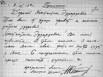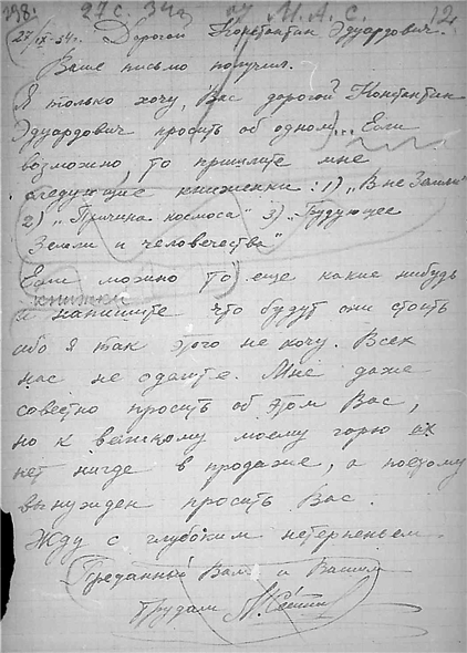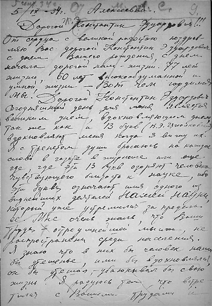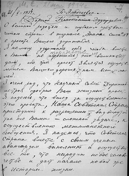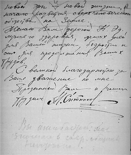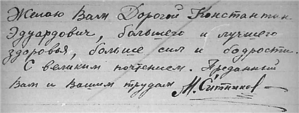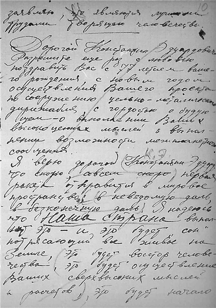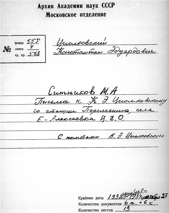 Письма М.А. Ситникова к К.Э. Циолковскому.