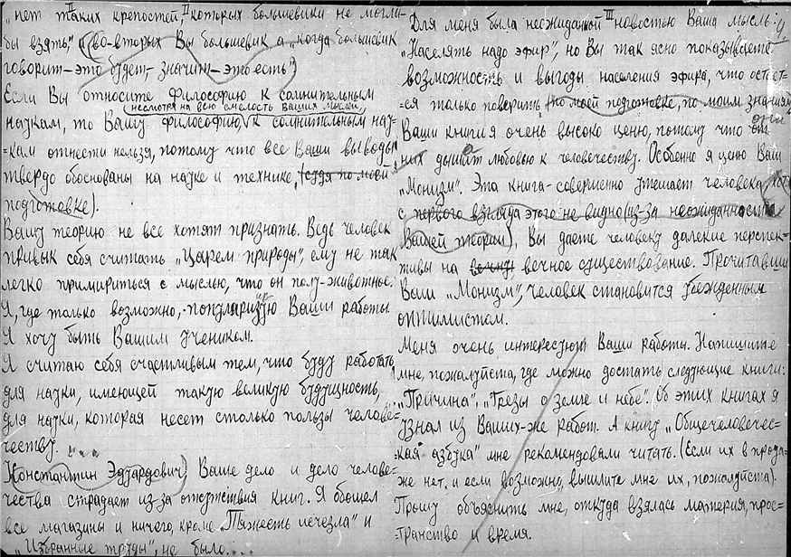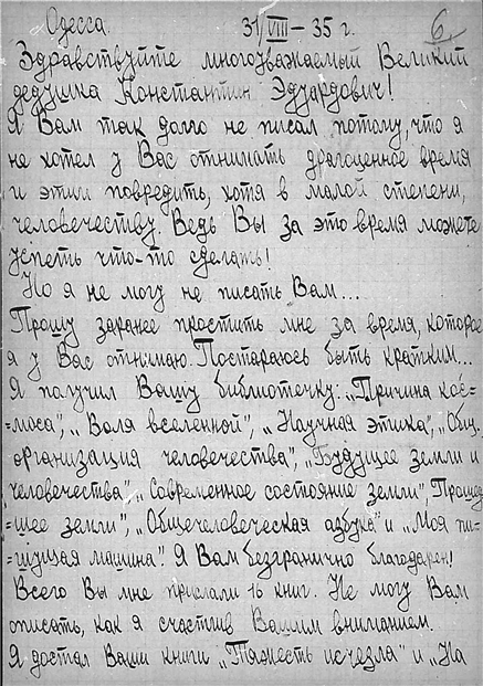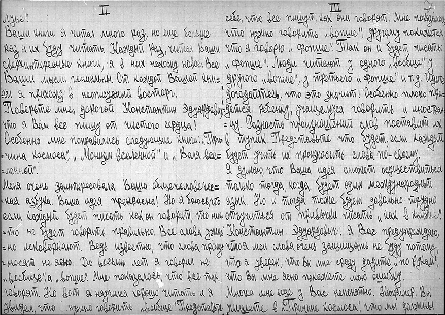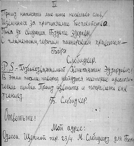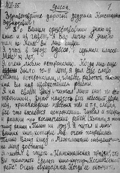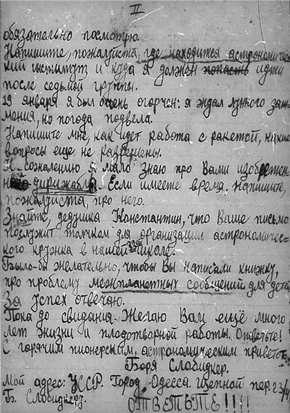 Письма школьника Бориса Слобидкера к К.Э. Циолковскому.