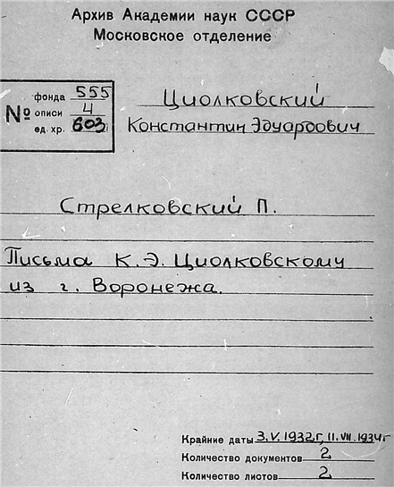 Письма Петра Стрелковского к К.Э. Циолковскому.