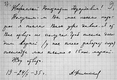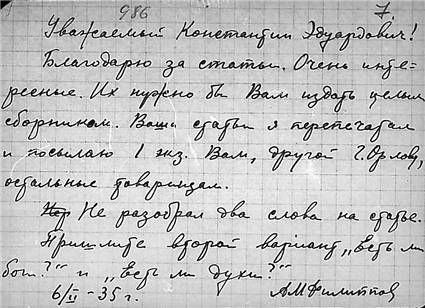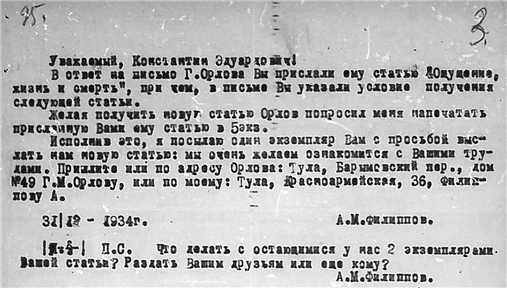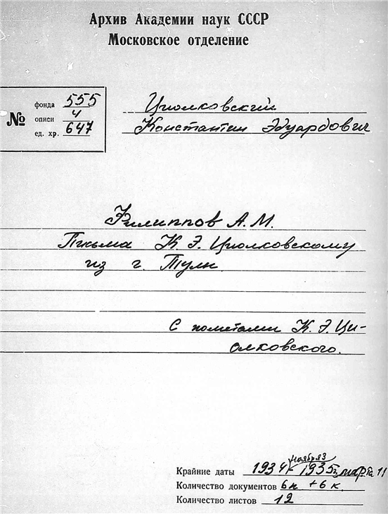 Письма Алексея Михайловича Филиппова к К.Э. Циолковскому.