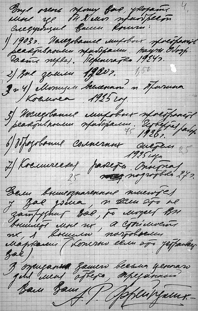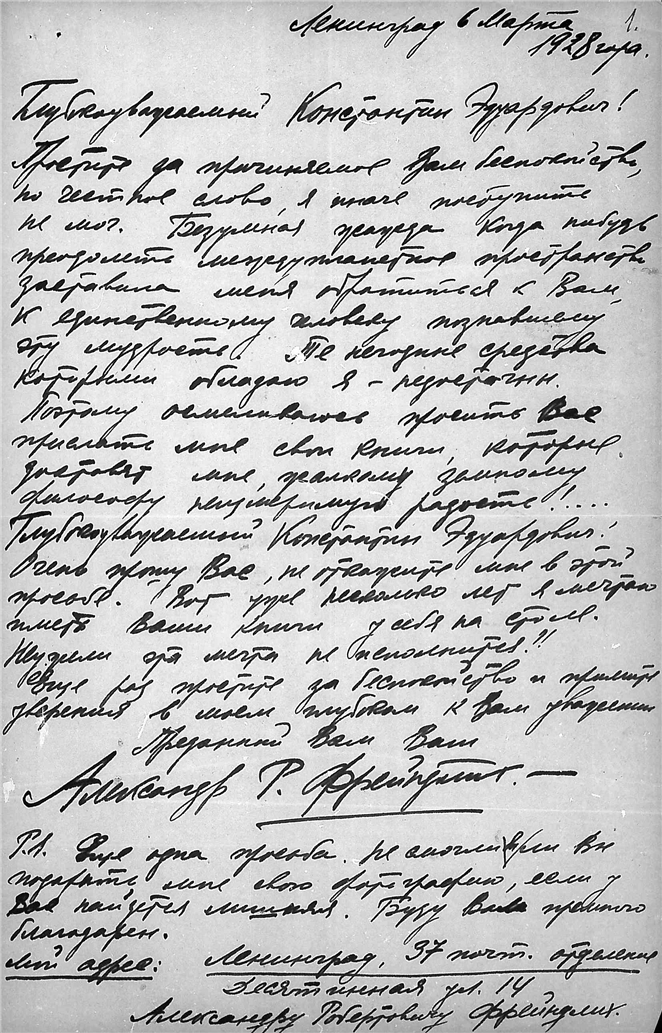 Письма Александра Робертовича Фрейдлиха к К.Э. Циолковскому.