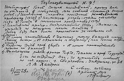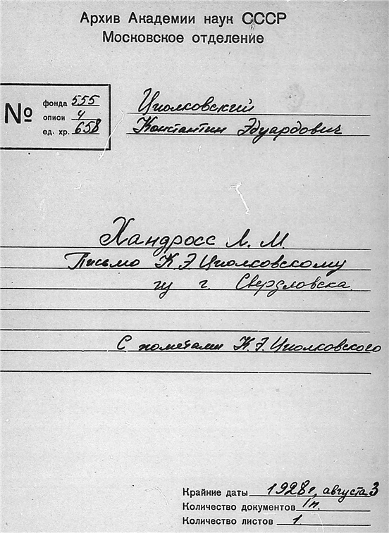 Письмо Л.М. Хандросса к К.Э. Циолковскому.