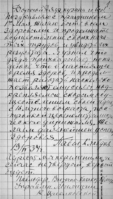 Письма племянников Павла и Клавдии Циолковских к К.Э. Циолковскому.