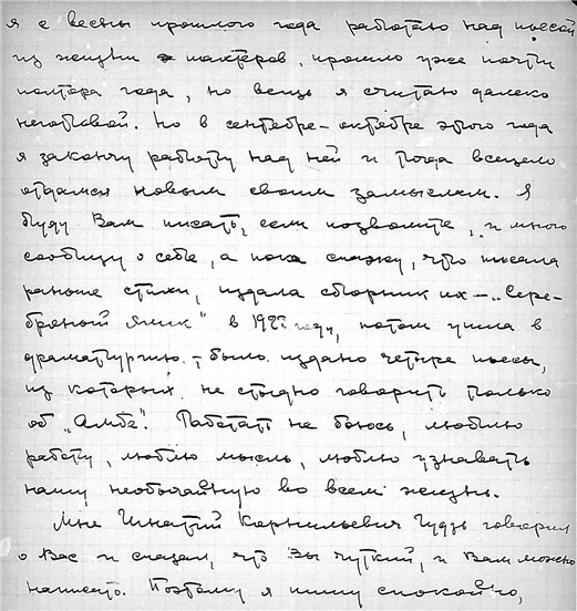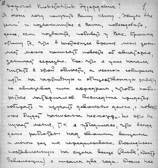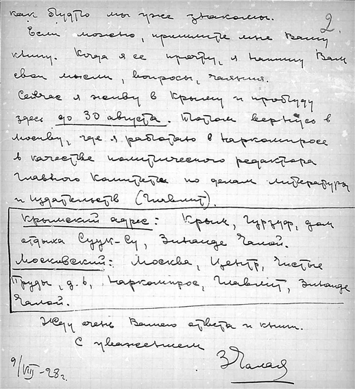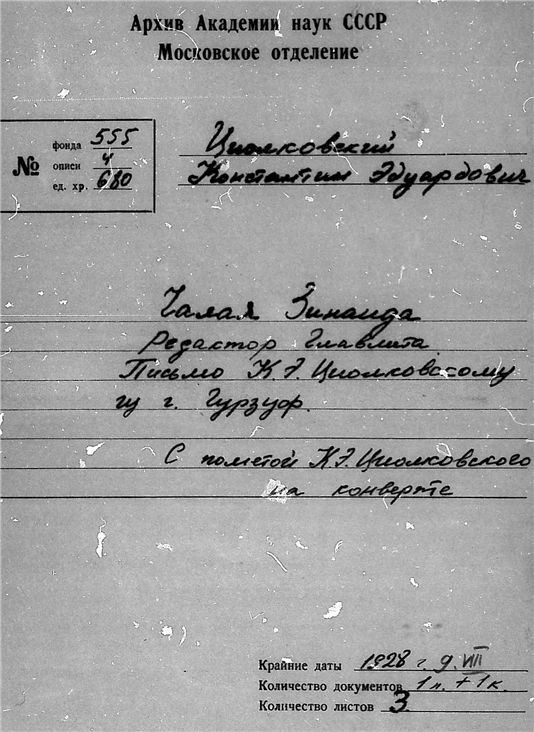 Письмо политредактора Главлита Зинаиды Чалой к К.Э. Циолковскому.