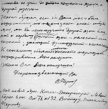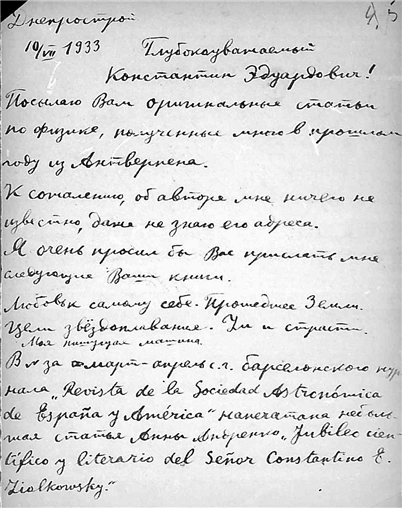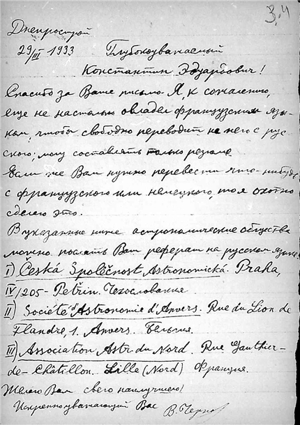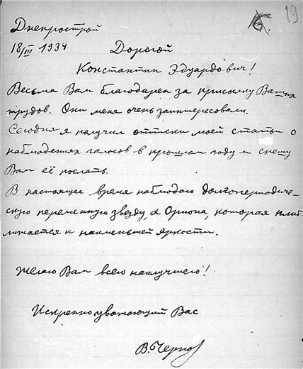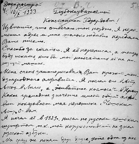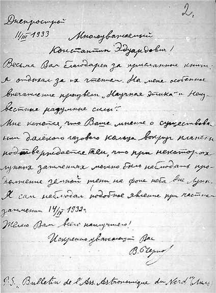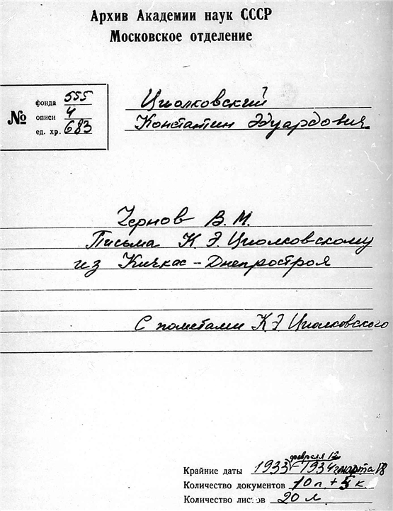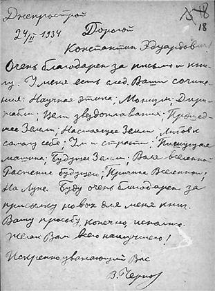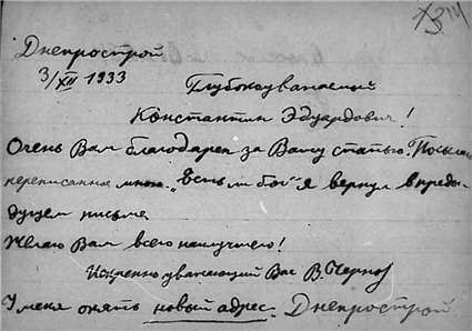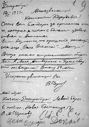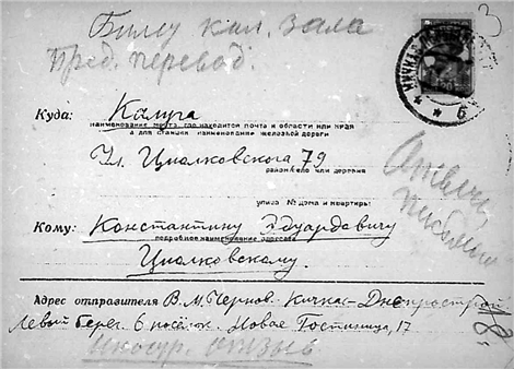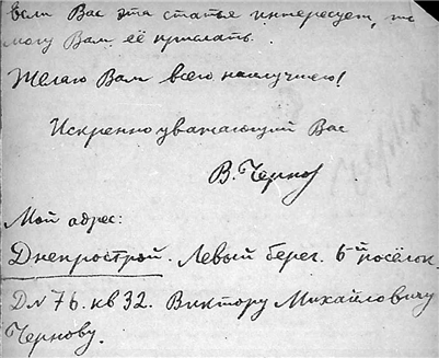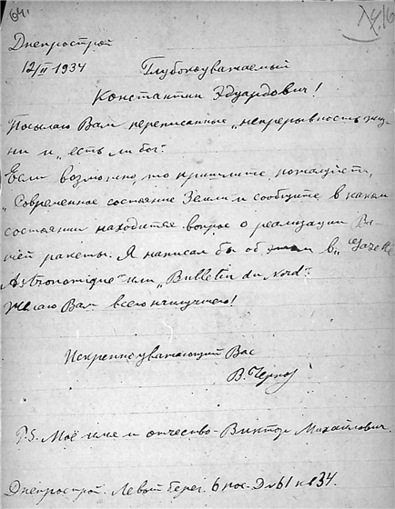 Письма Виктора Михайловича Чернова к К.Э. Циолковскому.