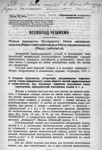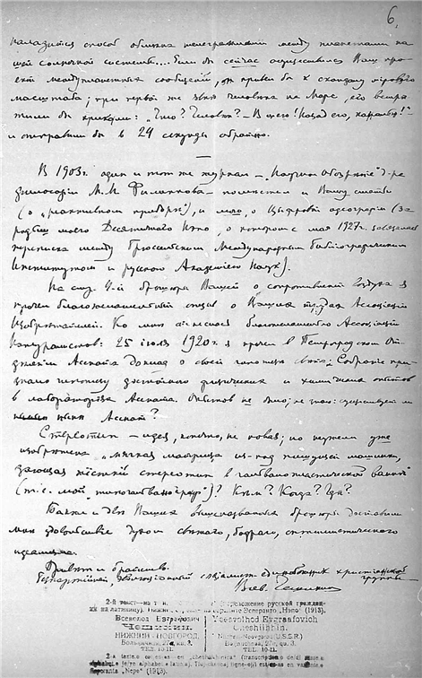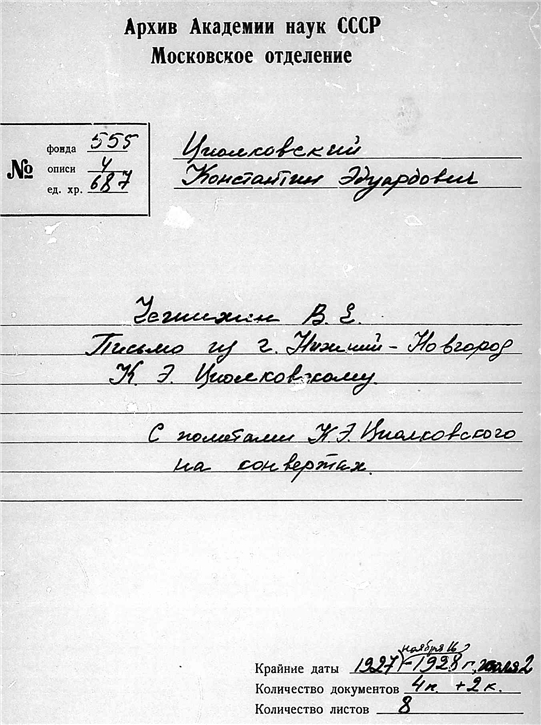 Письма Всеволода Евграфовича Чешихина к К.Э. Циолковскому.