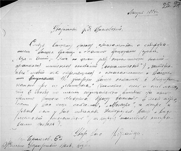 Письма Н. Эрайзера к К.Э. Циолковскому.