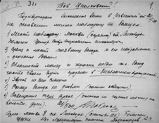 Дело № 797 | Название: | Письмо начальника лаборатории полигона А.С. Добросердова к К.Э. Циолковскому в ответ на его заметку "Кто видел Болид?». | | Вид материала: | письмо | | Способ воспроизведения: | автограф | | Языки: | русский | | Крайние даты: | 21.06.1934 | | Изображения страниц: |