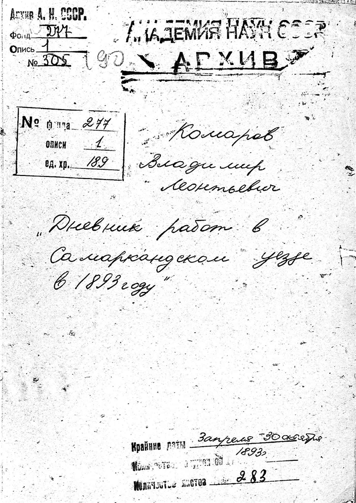 Комаров Владимир Леонтьевич. "Дневник работ в Самаркандском уезде в 1893".