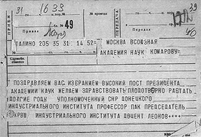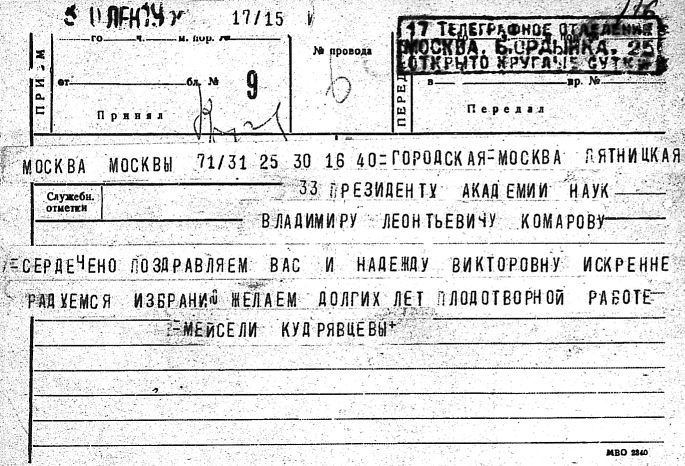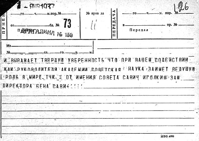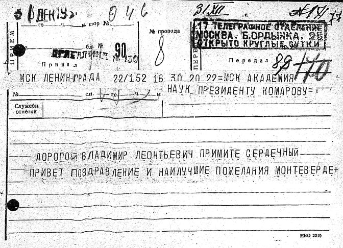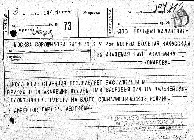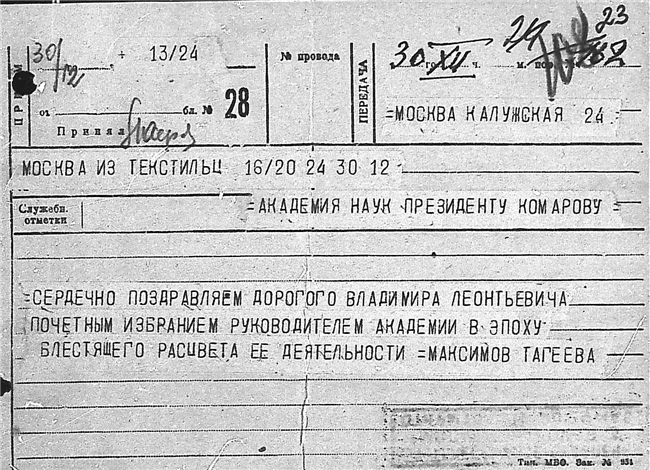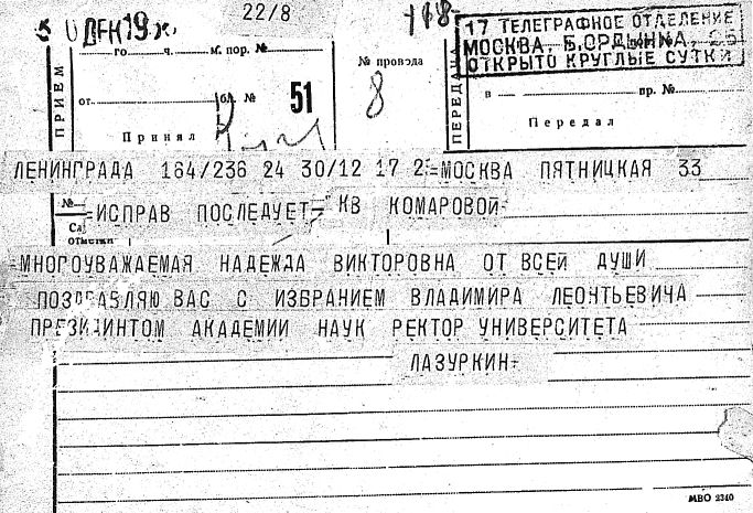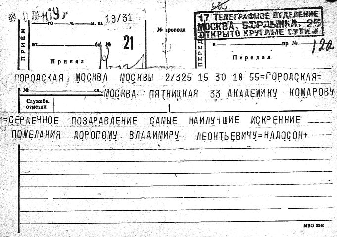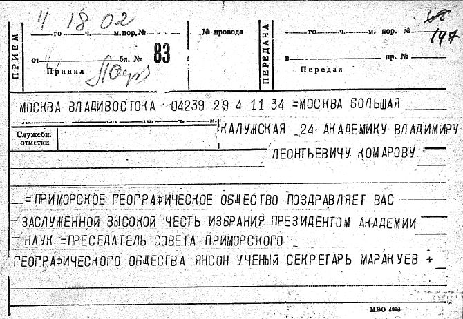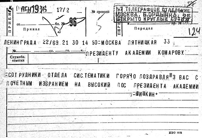 Дело № 51 | Название: | Комаров Владимир Леонтьевич. Поздравительные письма и телеграммы отдельных лиц в связи с семидесятилетием. | | Вид материала: | поздравительные письма, телеграммы | | Способ воспроизведения: | машинопись, рукопись | | Языки: | русский | | Крайние даты: | | | Изображения страниц: |
