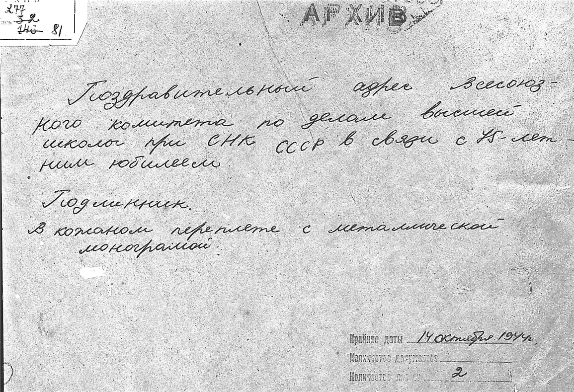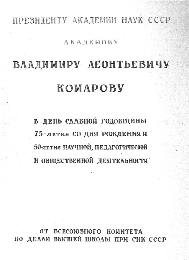 Дело № 81 | Название: | Комаров Владимир Леонтьевич. Поздравительный адрес Всесоюзного комитета по делам высшей школы при СНК СССР в связи с 75-летним юбилеем. | | Вид материала: | поздравительные адреса | | Способ воспроизведения: | типографская печать, с подписями | | Языки: | русский | | Крайние даты: | | | Изображения страниц: |