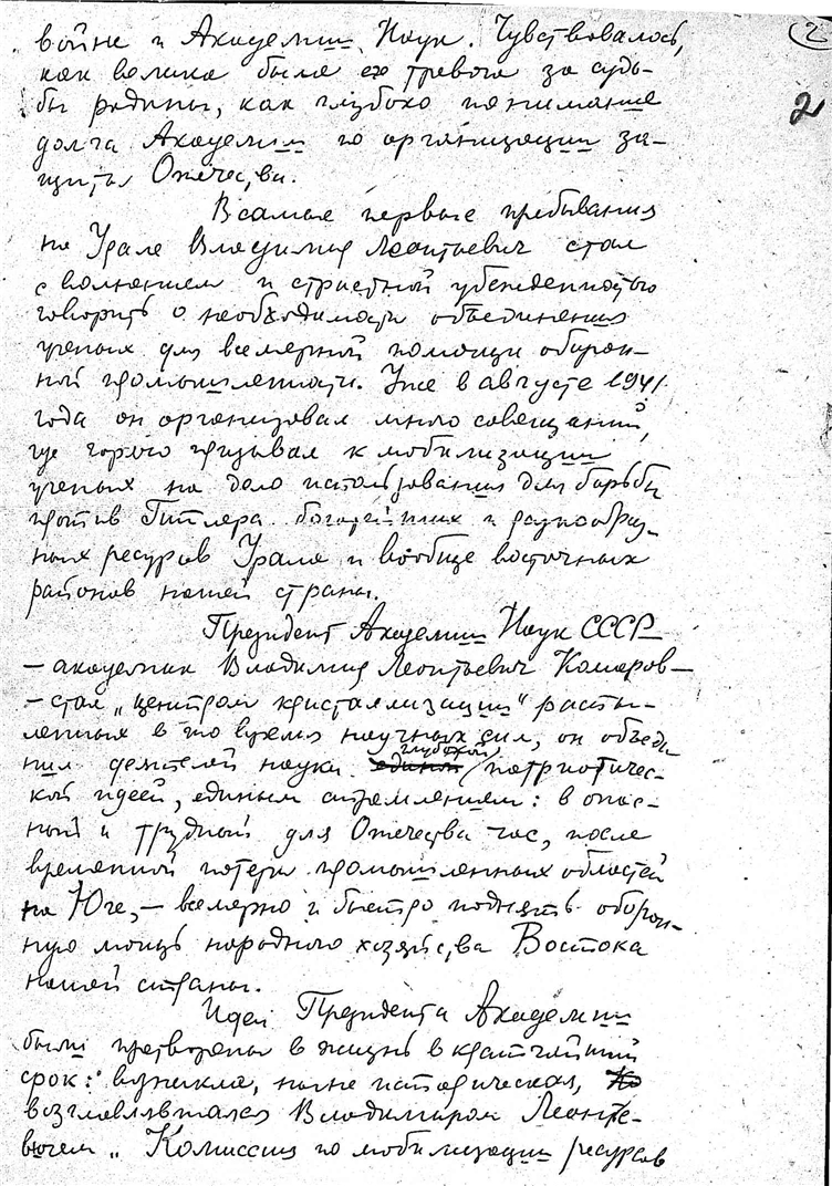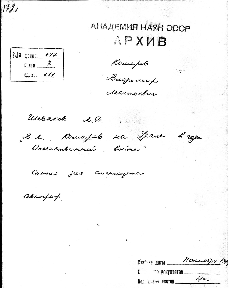 Комаров Владимир Леонтьевич. Л. Д. Шевяков. "В. Л. Комаров на Урале в годы Отечественной войны".
