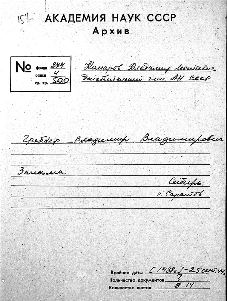 Архив академика В.Л.Комарова