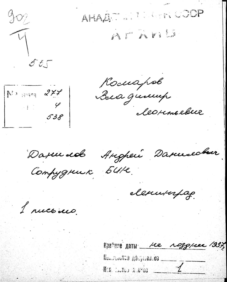 Комаров Владимир Леонтьевич. Данилов Андрей Данилович, сотрудник БИН. Ленинград.