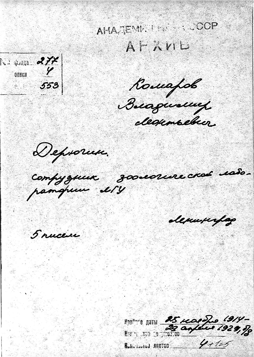 Комаров Владимир Леонтьевич. Дерюгин, сотрудник зоологической лаборатории ЛГУ. Ленинград.