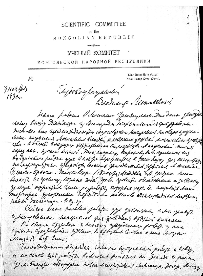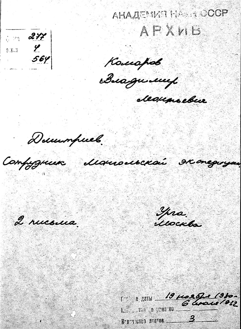 Комаров Владимир Леонтьевич. Дмитриев, сотрудник Монгольской экспедиции. Урга, Москва.