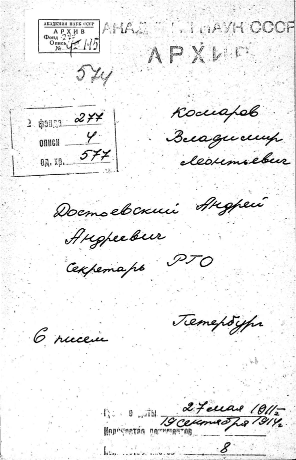 Архив академика В.Л.Комарова