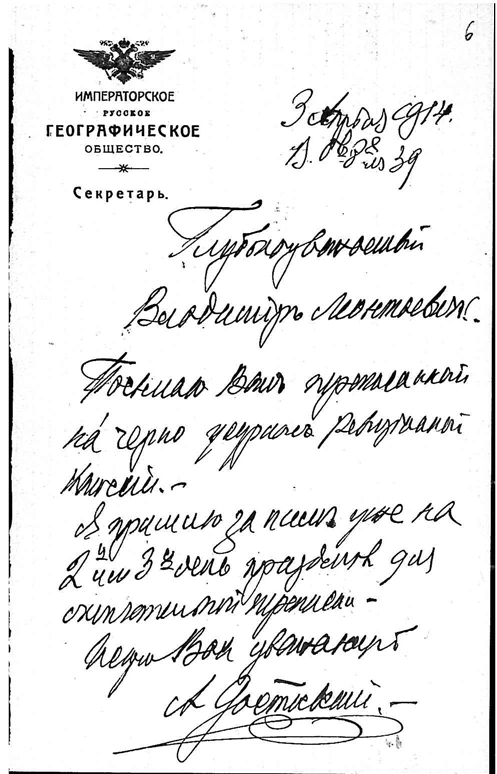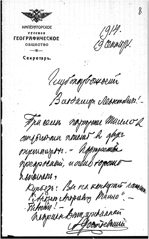 Комаров Владимир Леонтьевич. Достоевский Андрей Андреевич, секретарь РГО. Петербург.