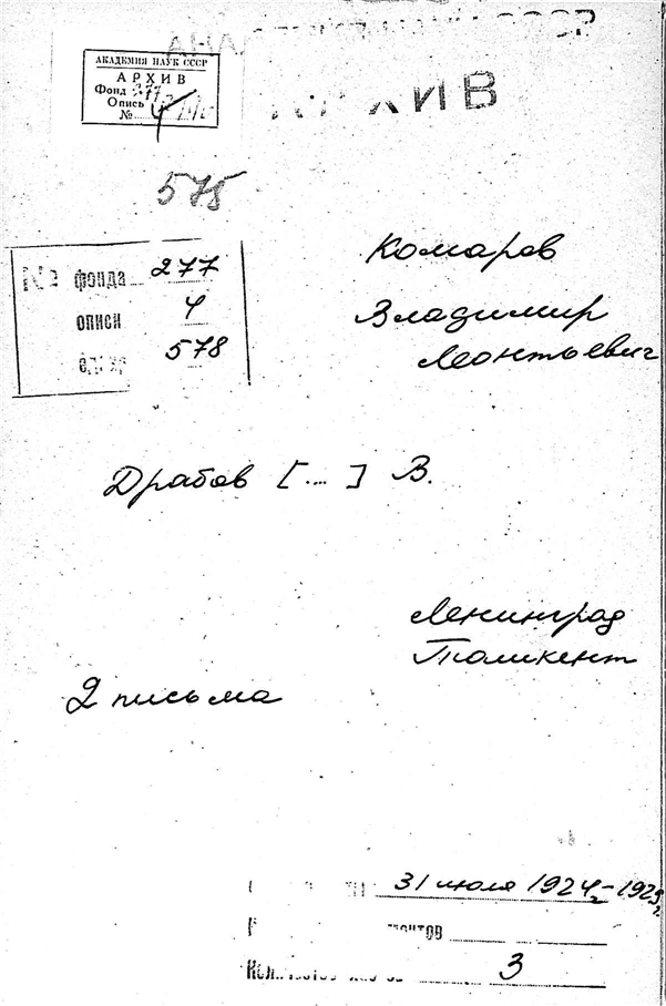 Комаров Владимир Леонтьевич. В. Драбов. Ленинград, Ташкент.