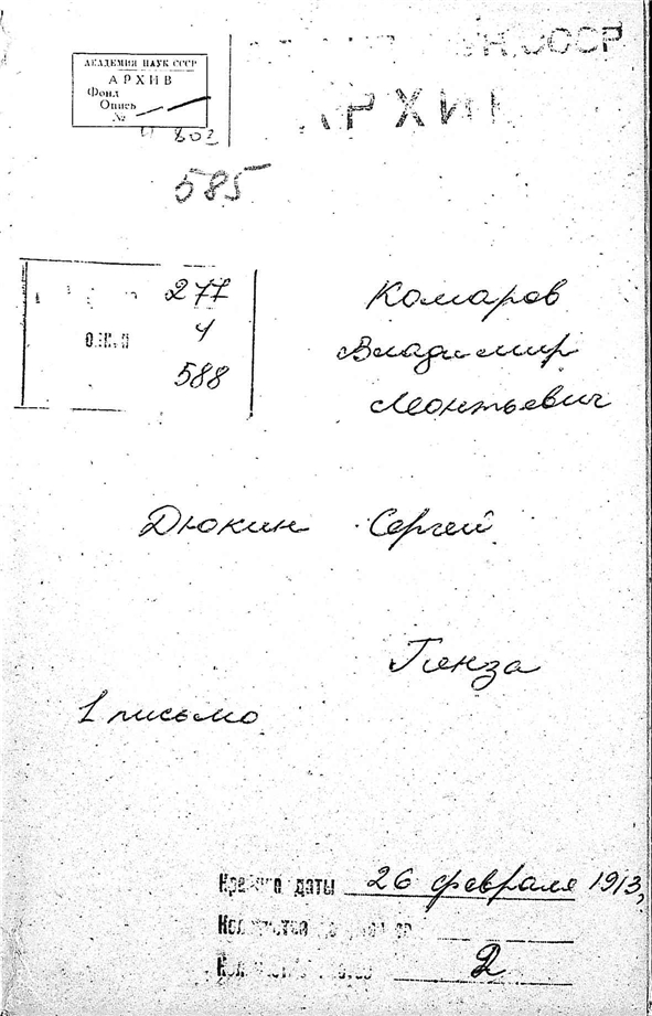 Архив академика В.Л.Комарова