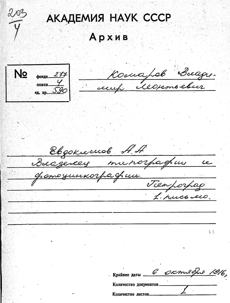 Комаров Владимир Леонтьевич. А. А. Евдокимов, владелец типографии и фотоцинкографии. Петроград.